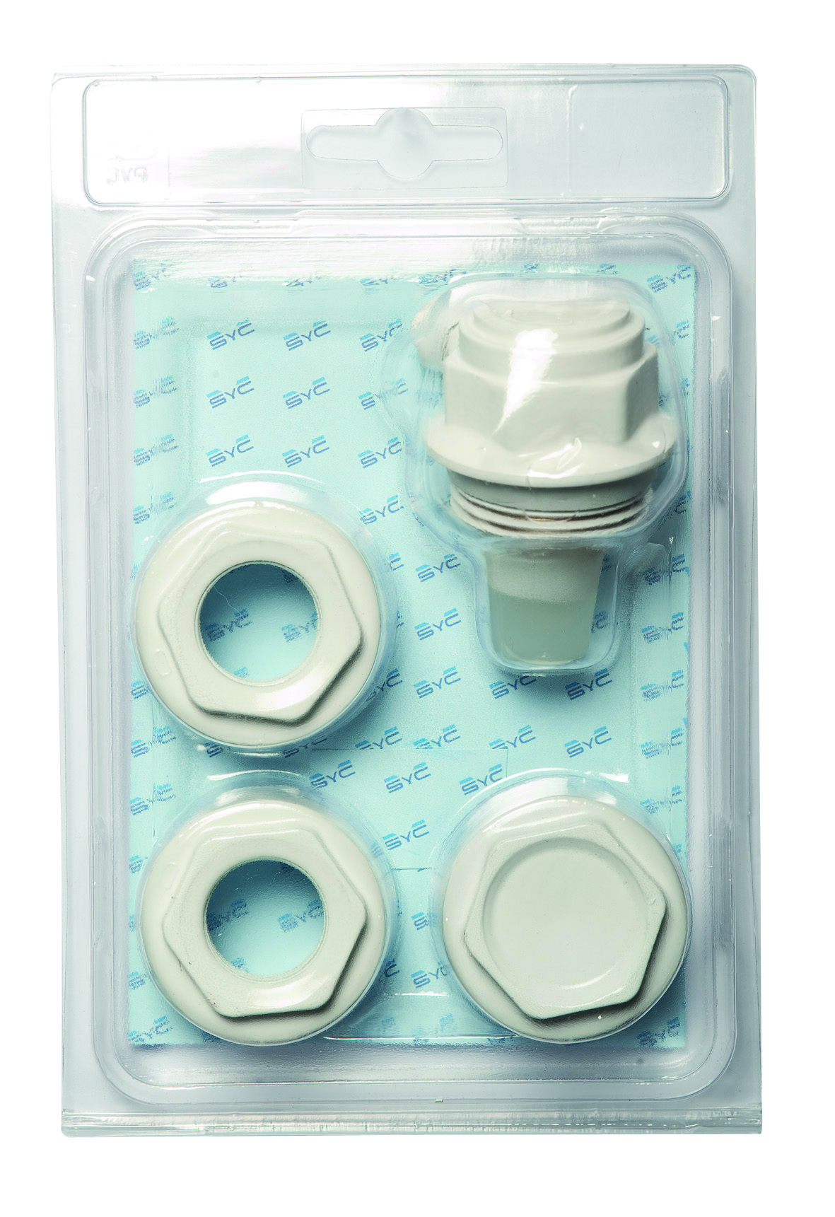 Our universal white plugs with automatic air vent valve include: two 1" x 1/2" right reducers, one 1" left blind plug, three silicone gaskets and one 1" float air vent valve left or right.