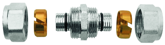 RACOR RECTO DOBLE A COMPRESIÓN PARA TUBO PEX-AL-PEX - ACCESORIO LATÓN