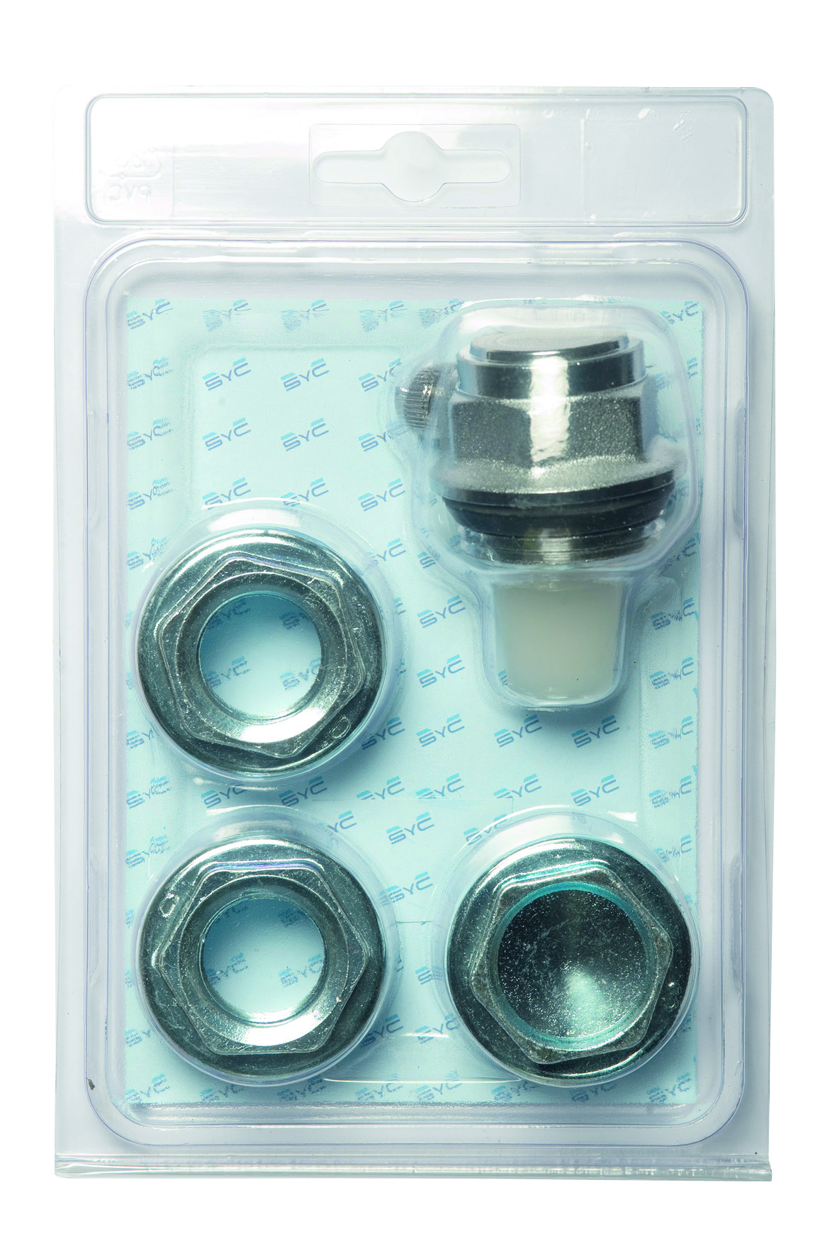 Nuestros kits de tapones zincados con purgador automático de boya cromado incluyen: dos reducciones derecha o izquierda 1" x 1/2", un tapón ciego derecha o izquierda 1", tres juntas de silicona, un purgador automático de boya 1" derecha o izquierda.